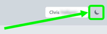 To switch between the modes, look in the top right of the page. Click the moon icon to turn on dark mode.